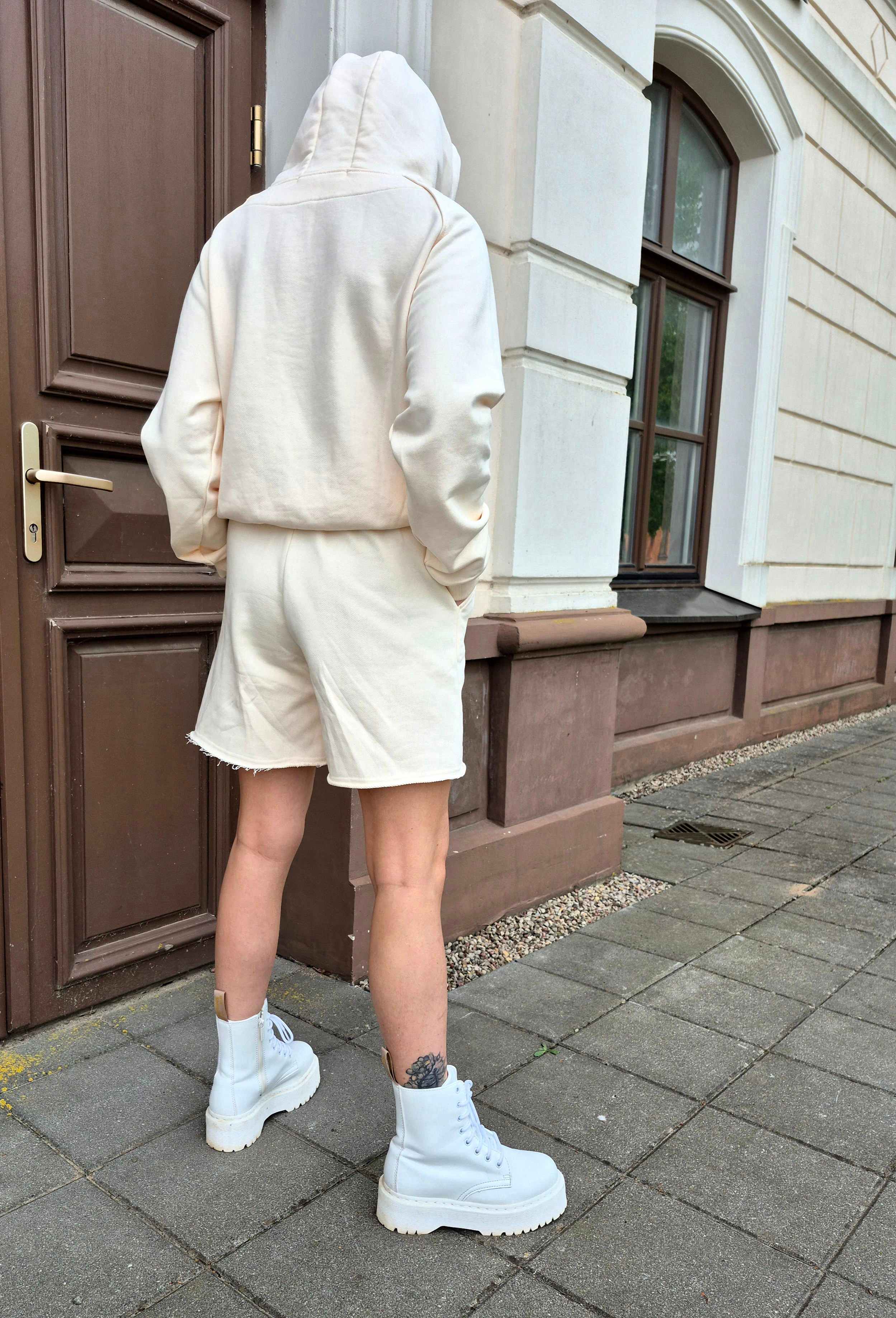 Džemperio lekalas su masyviu kapišonu ir išskirtine detale (Per visą kapišono ilgį einančiu užtrauktuku).